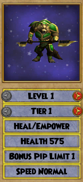 Lets start of with Life Wolf’s blades. These blades are actually higher value per pip than its damage, which is good because its damage is otherwise abysmal. For 0 pips Frode can give a 50 blade that clears DoTs, similar to Storm Wolf or Colossus. There is also a 3 pip AoE version of that blade that gives +125 damage, which is comparable to the AoE blades of Storm Cyclops, Life Pig, Storm Rat, and Storm Elf.