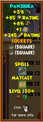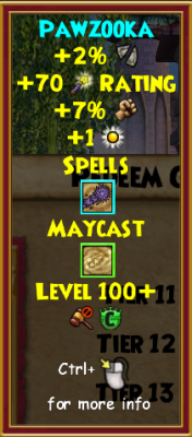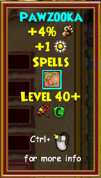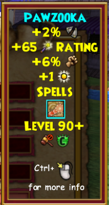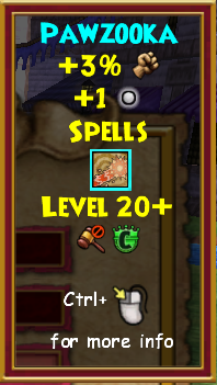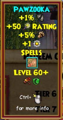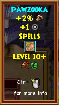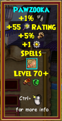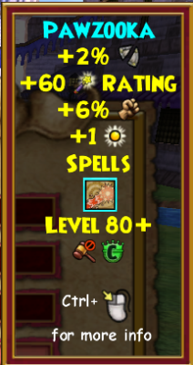 A brand new type of wand, the Pawzooka allows you to shoot tennis balls at your enemies! Also, it offers the chance to have a killer game of fetch! In addition to that, the may cast spell it offers isn’t too bad either, offering the convenience of both a stun and a pierce!