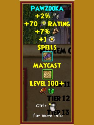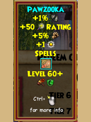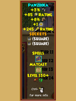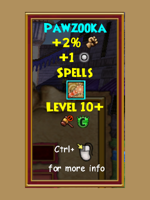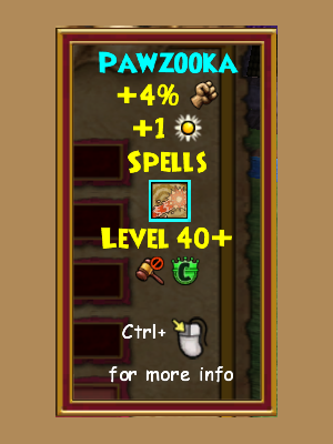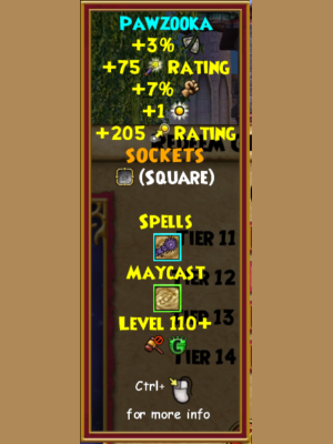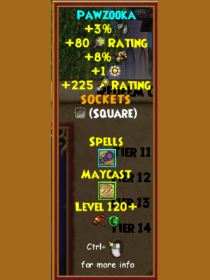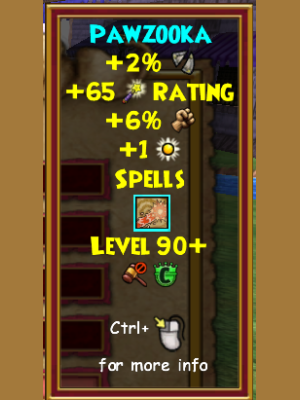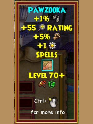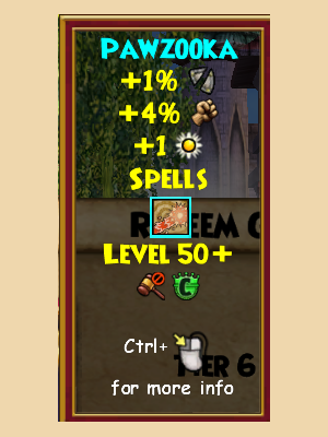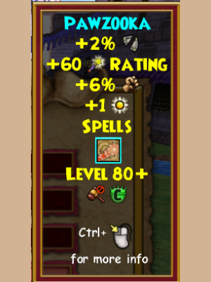 A brand new type of wand, the Pawzooka allows you to shoot tennis balls at your enemies! Also, it offers the chance to have a killer game of fetch! In addition to that, the may cast spell it offers isn’t too bad either, offering the convenience of both a stun and a pierce!