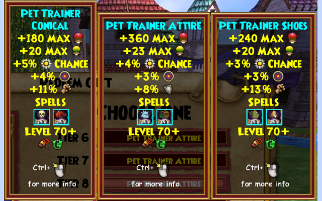 The gear doesn’t offer much in terms of combat stats. It gives you a decent amount of health, but very little damage, and no critical at all. However, it’s on par with the top energy gear in the game. In addition to that, from tier 2 onwards, this gear offers six different monstrology spells. These monstrology spells are unique though. They not only offer the “Extract Animus” effect, but also add to the base damage of the spell, like a damage enchantment. This is the first time monstrology spells have offered this! Perhaps now might be the time to get that Monstrodome after all? Oh and did I even mention the gear is dyeable?