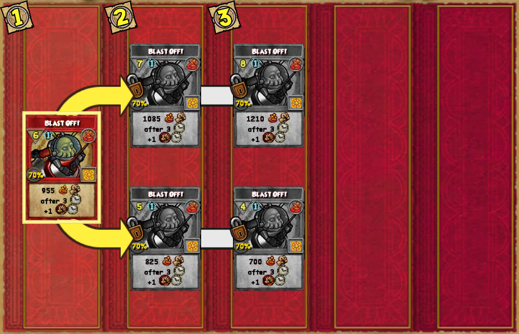 Top Path: Increase the pip cost to 6 and then 7, with increasing damage.