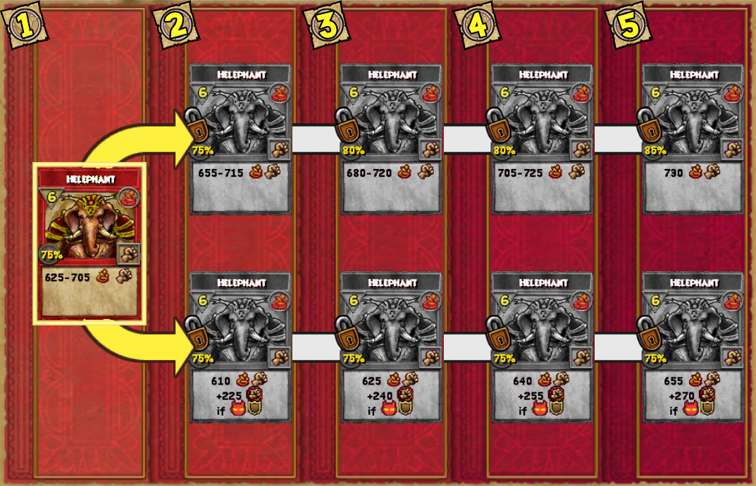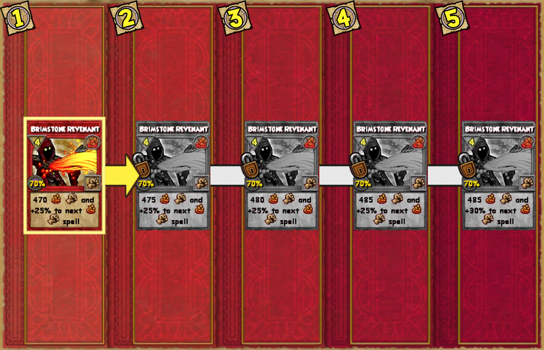 Bottom Path: Pip cost remains at 5, and damage increases with each tier. Shadow pip cost increased to 2, and level-locked.