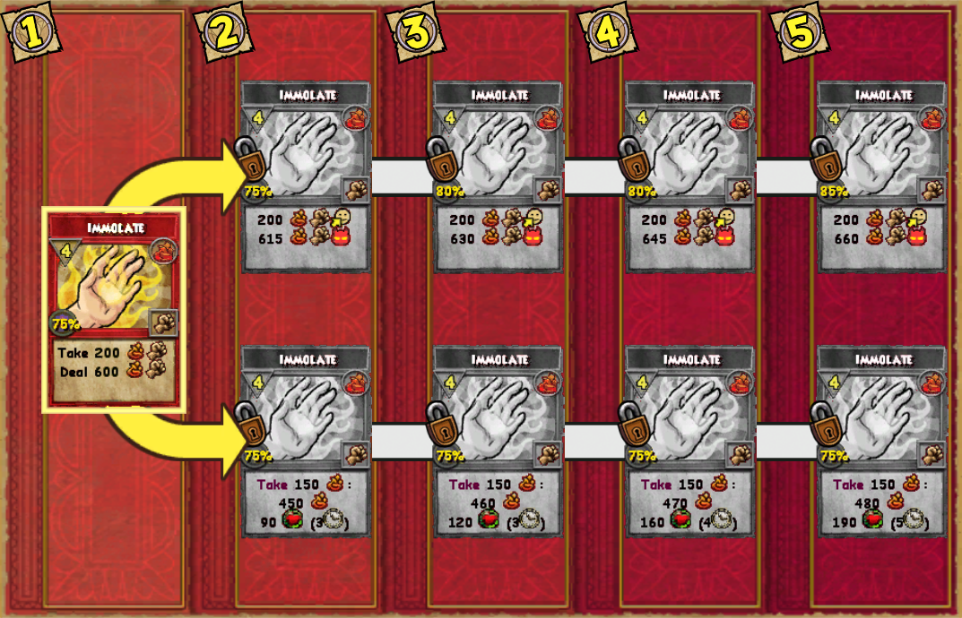 Top Path: Increase the pip cost to 7 and then 8, with increasing damage.